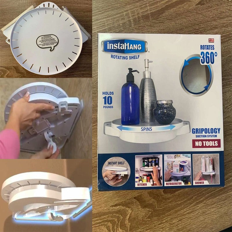 Description Wall Hanging Corner Shelf Rotating 360 degree KITCHEN & CABINET ORGANIZER: Use the Instahang...