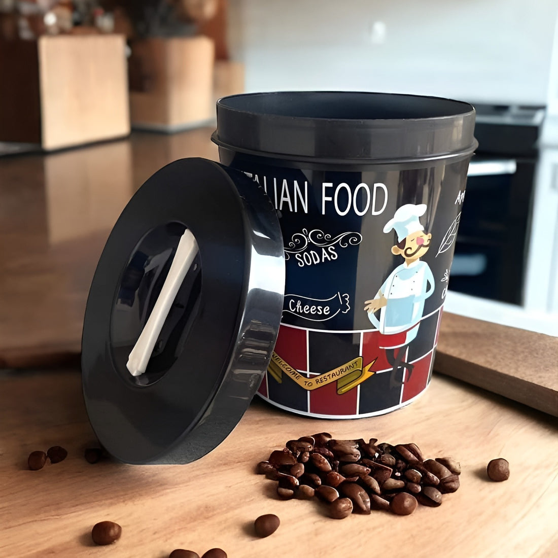 Plastic Printed Large Storage Jar with Lid 1500ml Random Color