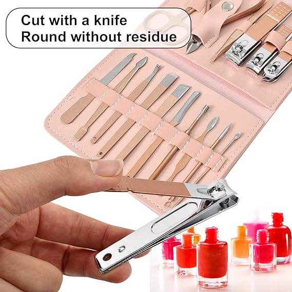 16 PCs Nail Clipper/Manicure & Pedicure Kit-Rose