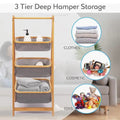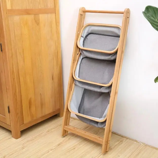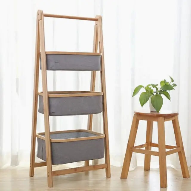 Keep your home neatly organized with this 3-Tier Natural Bamboo Storage Rack featuring three spacious fabric baskets. Its foldable design, sturdy A-frame structure, and modern minimalist look make it perfect for bathrooms, bedrooms, nurseries, laundry areas, and more. Lightweight, durable, and stylish — an ideal storage solution for any room.