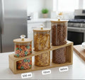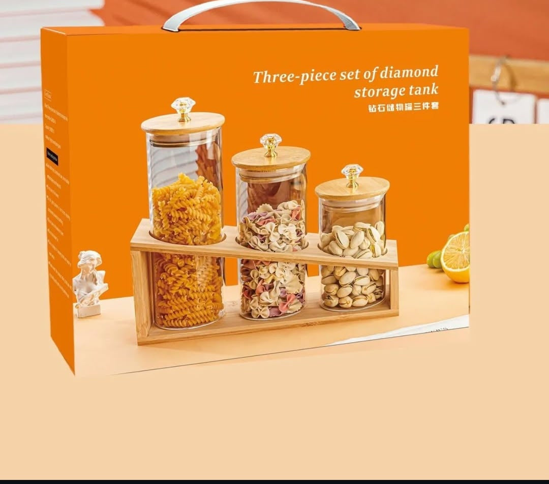 3-in-1 Diamond Top Borosilicate Glass Jar Set with Wooden Stand