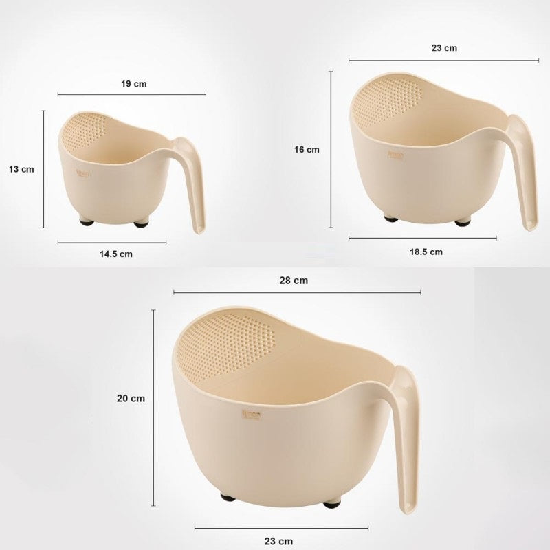 3 Pcs Rice Drain Bowl With Handle