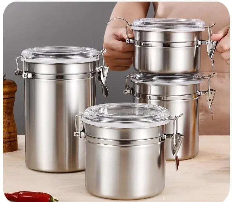 4 pcs Airtight Stainless Steel Jar Canister Coffee Flour Sugar Tea Container Holder