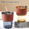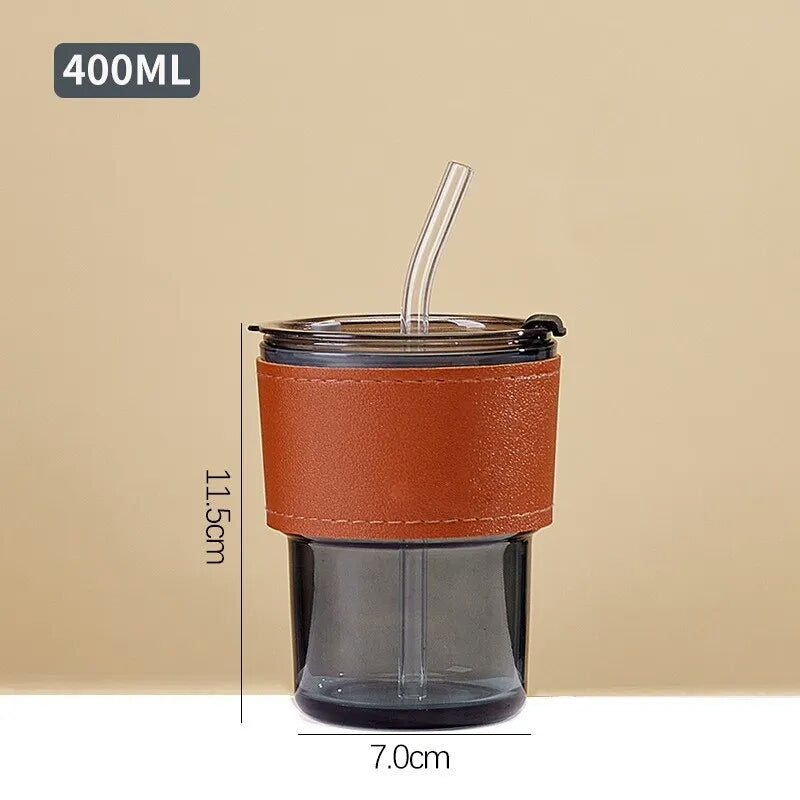 400ML Creative Amber Straw Glass Large-Capacity Coffee Cup Water Bottle