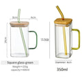 400ml square glass with straw wooden lid microwave safe glass meterail no colour only transparent
