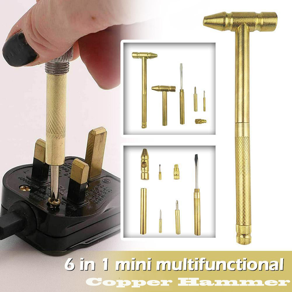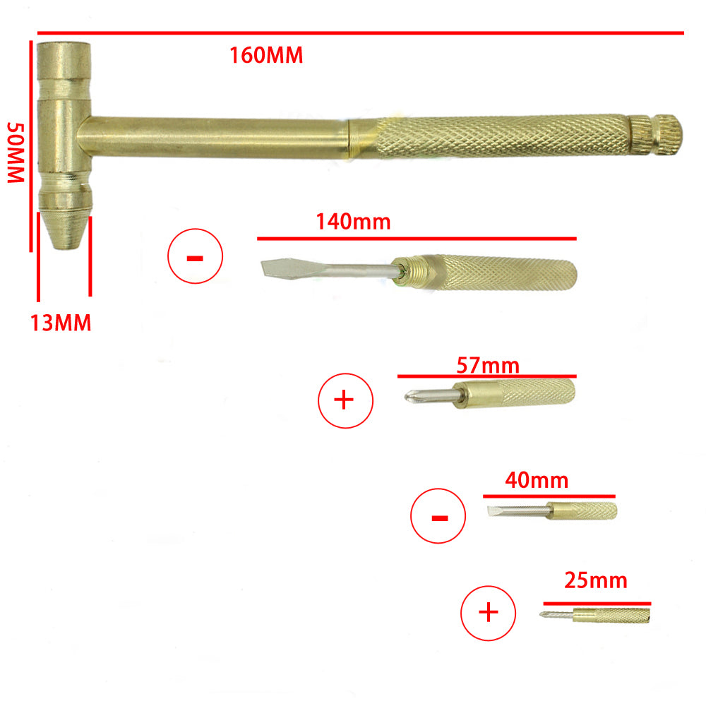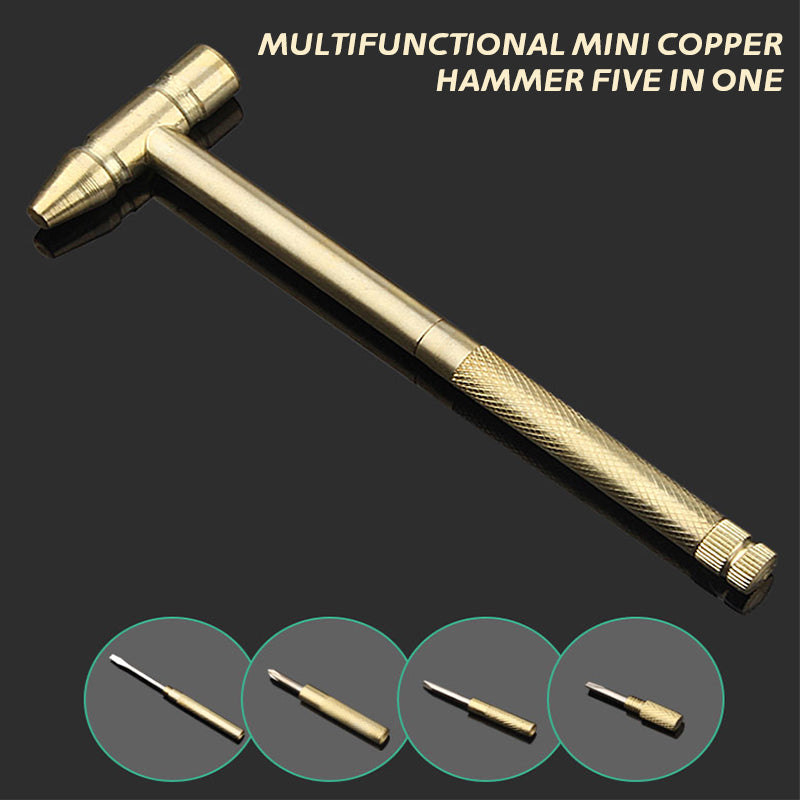 5 In 1 Micro Mini Multifunction Multi Brass Hammer 3 Kinds Screwdriver Bits Pocket DIY Tools
