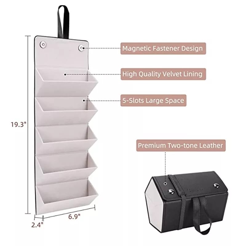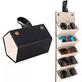 5-Slot Travel Foldable Sunglasses Organizer- Leather Hanging Eyeglasses Case