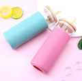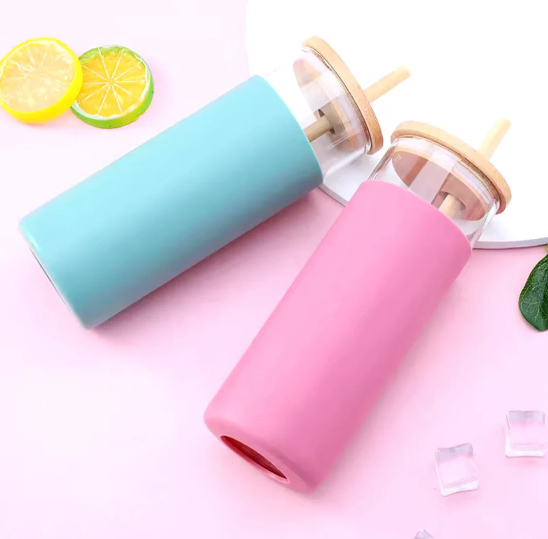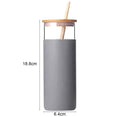 500ML Tumbler Glass Water Bottle, Silicone Bamboo Glass Cup with Straw