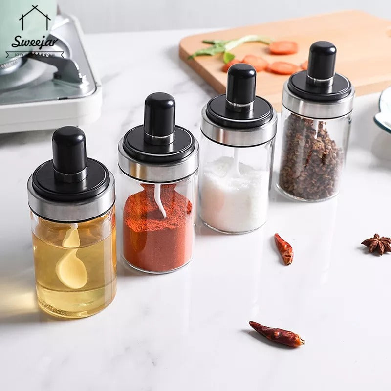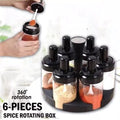 6 Pcs Condiment Spice Jars Revolving Base With Glass Bottle