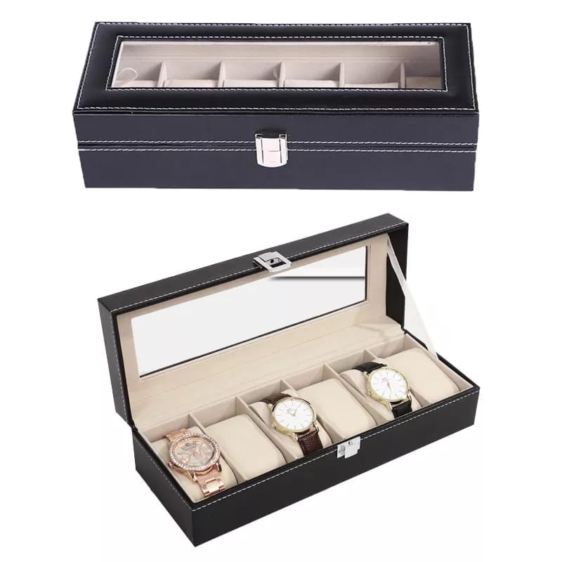 6 Slot Watch Storage Box Crocodile Texture (premium)
