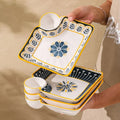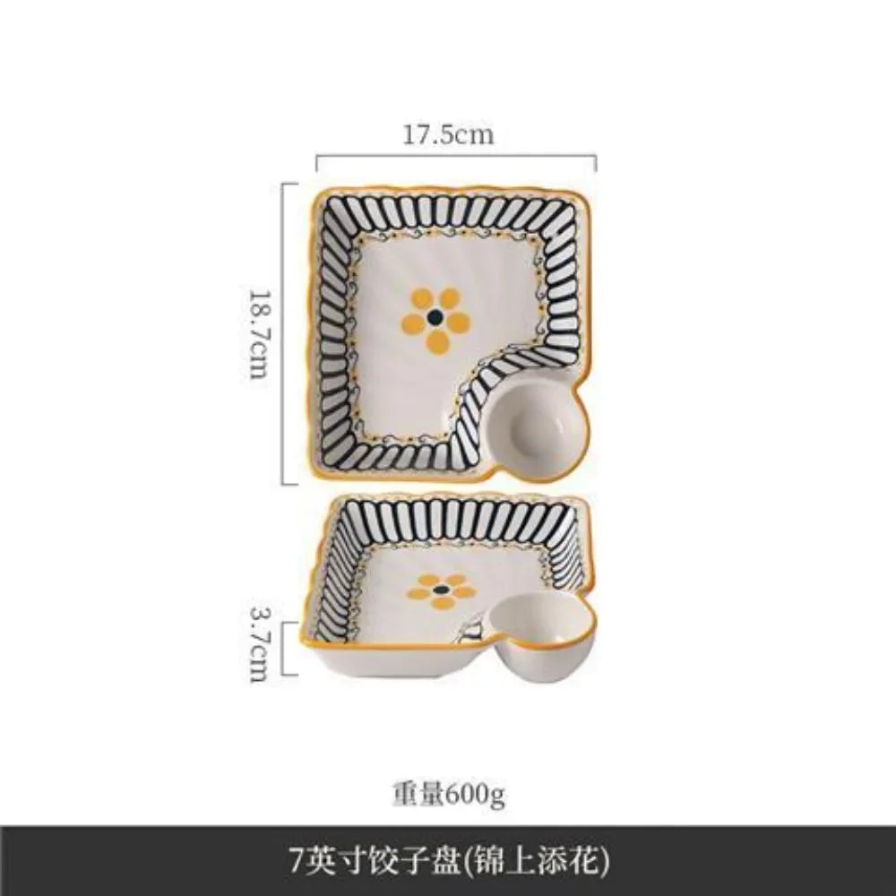 7-Inch Ceramic Dumpling Plate with Built-In Dipping Tray