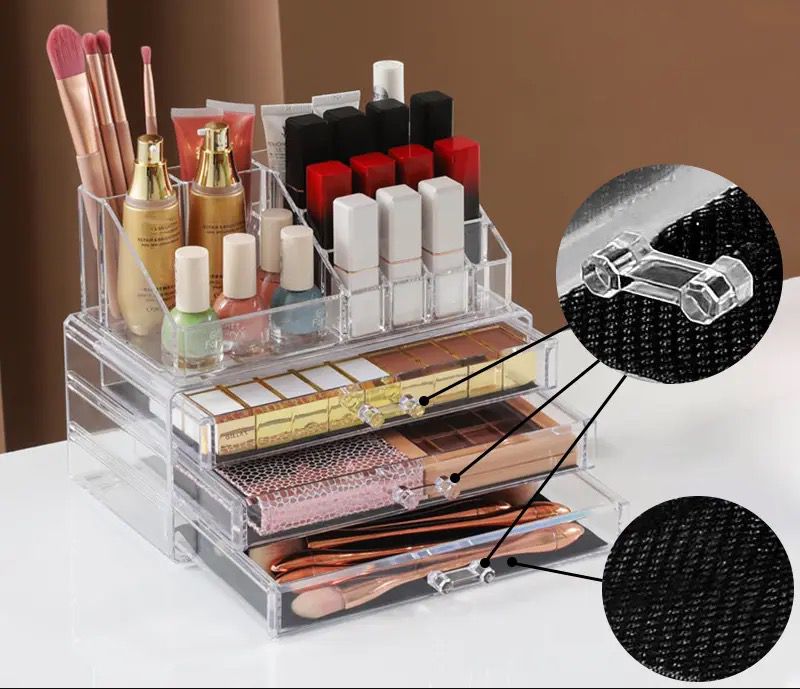 ACRYLIC MAKEUP COSMETIC ORGANIZER STORAGE BOX WITH 3 DRAWER