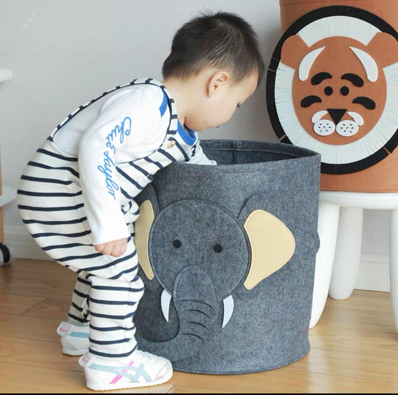 Fun animal faces like Lion, Elephant, and Shark make clean-up time exciting for kids.