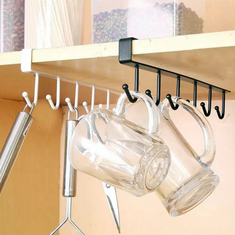 Cabinet Under Shelf 6 Hooks Iron Hanging Rack