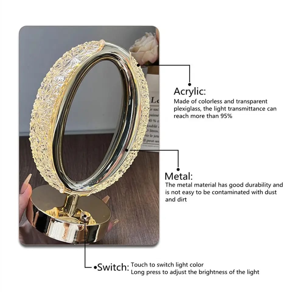 Crystal Oval Table Lamp, Touch Control Bedside Lamp with 3 Levels Brightness
