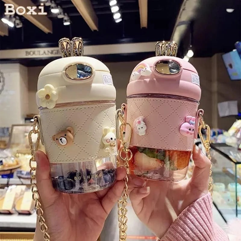 Cute Rabbit Ear Plastic Water Bottles With Straw 500ml