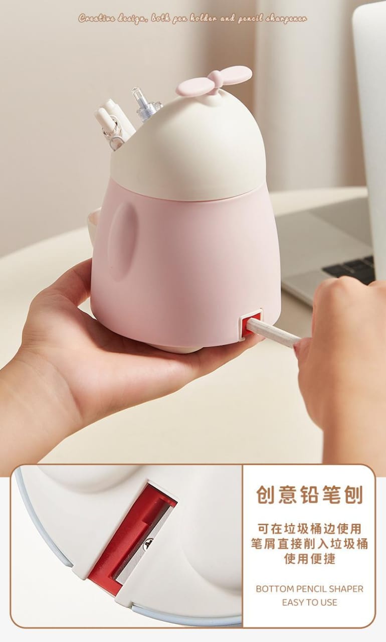 Cute Student Desktop Office Pen Holder Storage Bucket Comes with A Sharpener