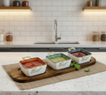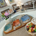 Danny Home Acacia Wood Platter with 3 Square Ceramic Bowls – 4-Piece Serving Set