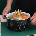 Upgrade your dining experience with this elegant ceramic bowl paired with a luxury crown-accent tempered glass lid. Designed for both beauty and performance, this bowl is perfect for serving soups, ramen, noodles, curries, and stews while keeping food warm and visually appealing.