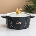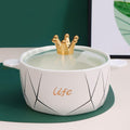 Elegant Ceramic Bowl with Crown Glass Lid (1200ML)