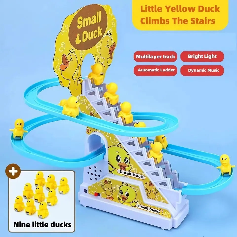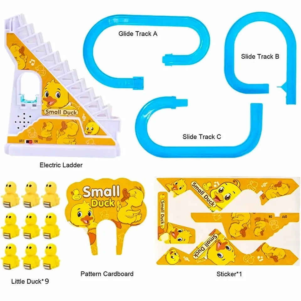 Funny Little Yellow Ducks Climbing Stairs And Sliding At Race Track For Kids Birthday Gifts