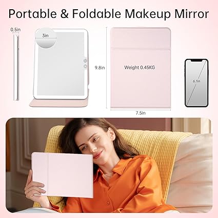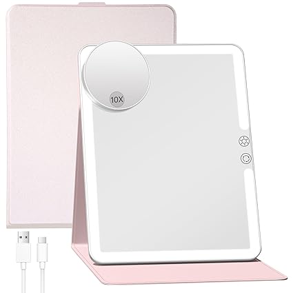FUNTOUCH 2500mAh Large Rechargeable Travel Makeup Mirror with Lights