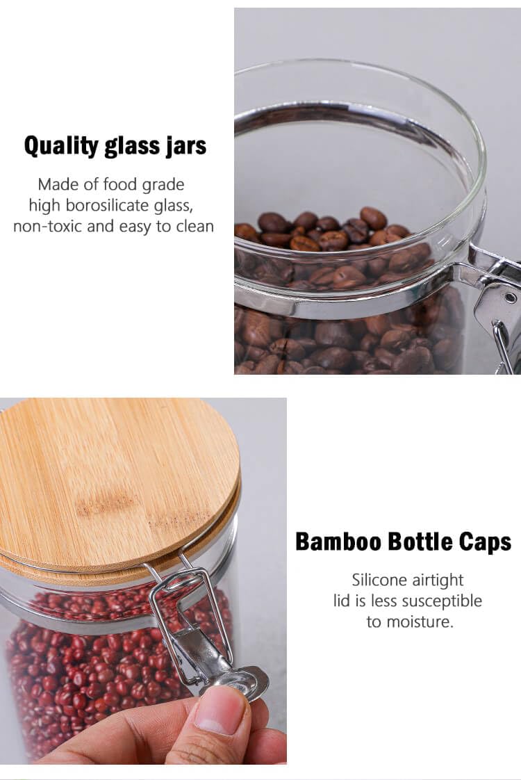 Glass Coffee Bean Storage Container with Airtight Clip Seal Lid Coffee Storage Jar for Coffee Beans, Ground Coffee, Nuts, Cookies