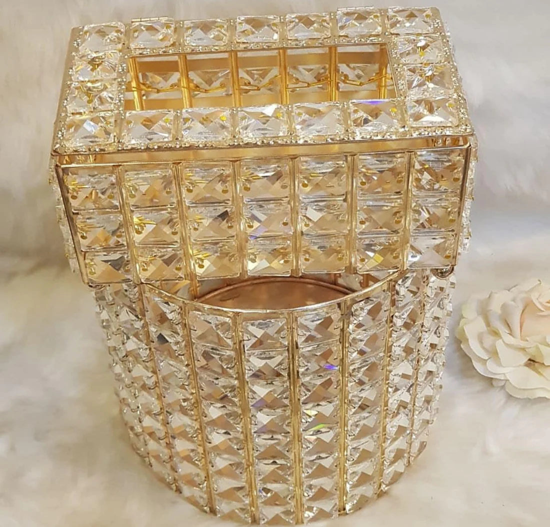 Golden Crystal Dustbin Tissue box Set