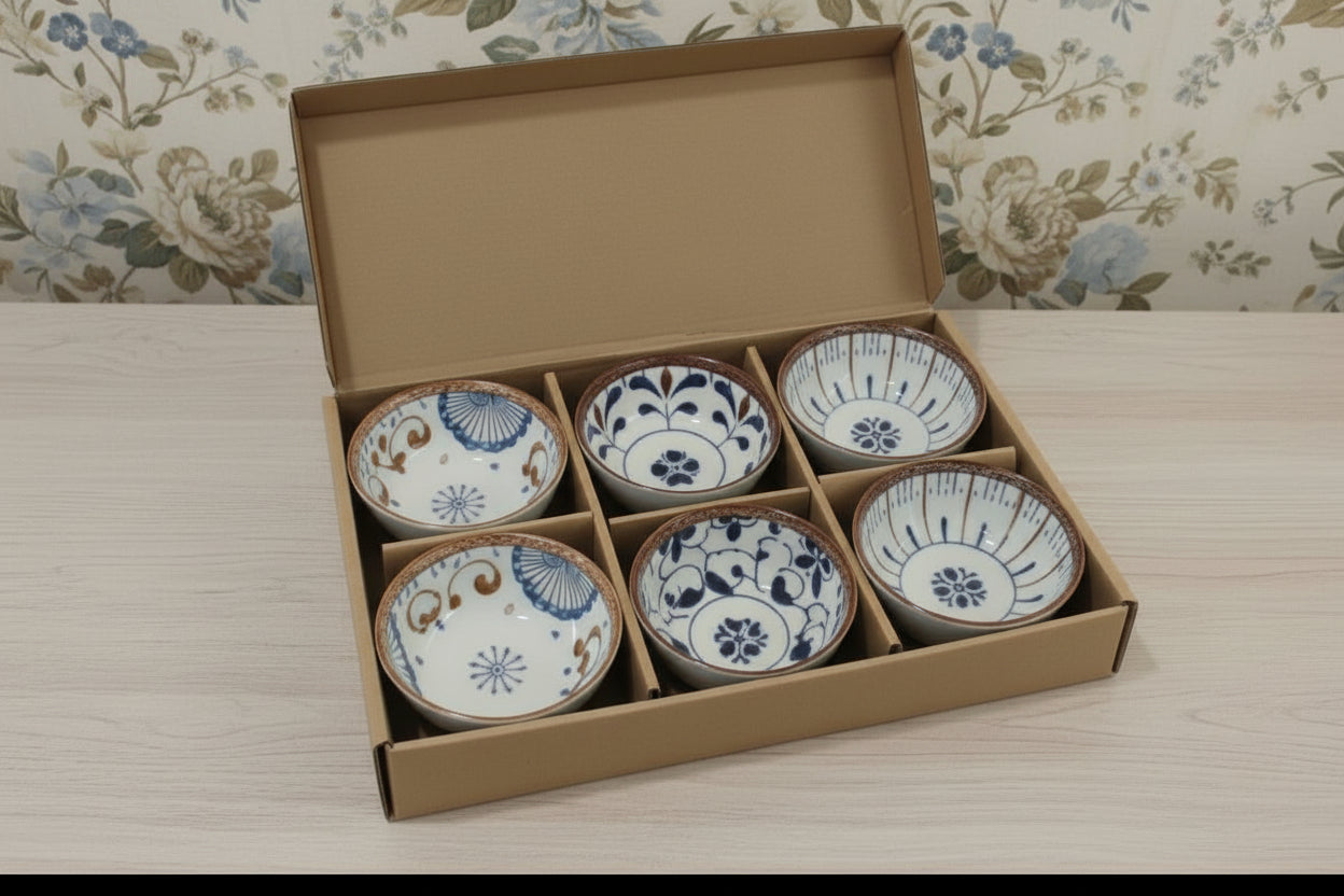 Elevate your dining experience with this Japanese-style ceramic bowl set, featuring six beautifully crafted 4.5-inch bowls. Designed with elegant floral and blue-and-white patterns, these bowls bring a refined, artistic touch to everyday meals and special occasions alike.