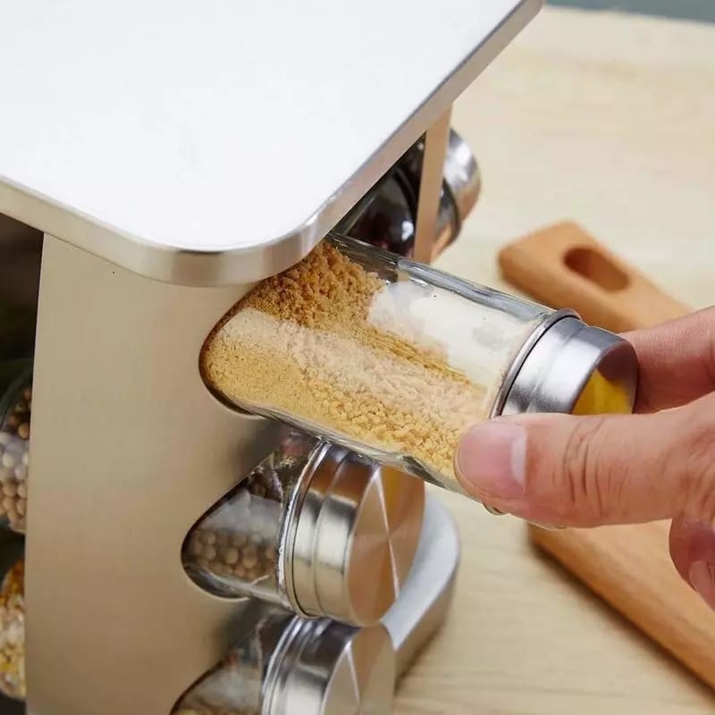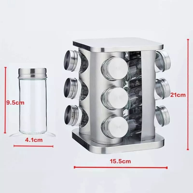 Kitchen Stainless Steel Spice Jar Revolving Base 12-Piece Set