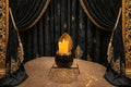 - Artistic Gold Backdrop: Textured leaf/fan design reflects candlelight for a warm, glowing effect