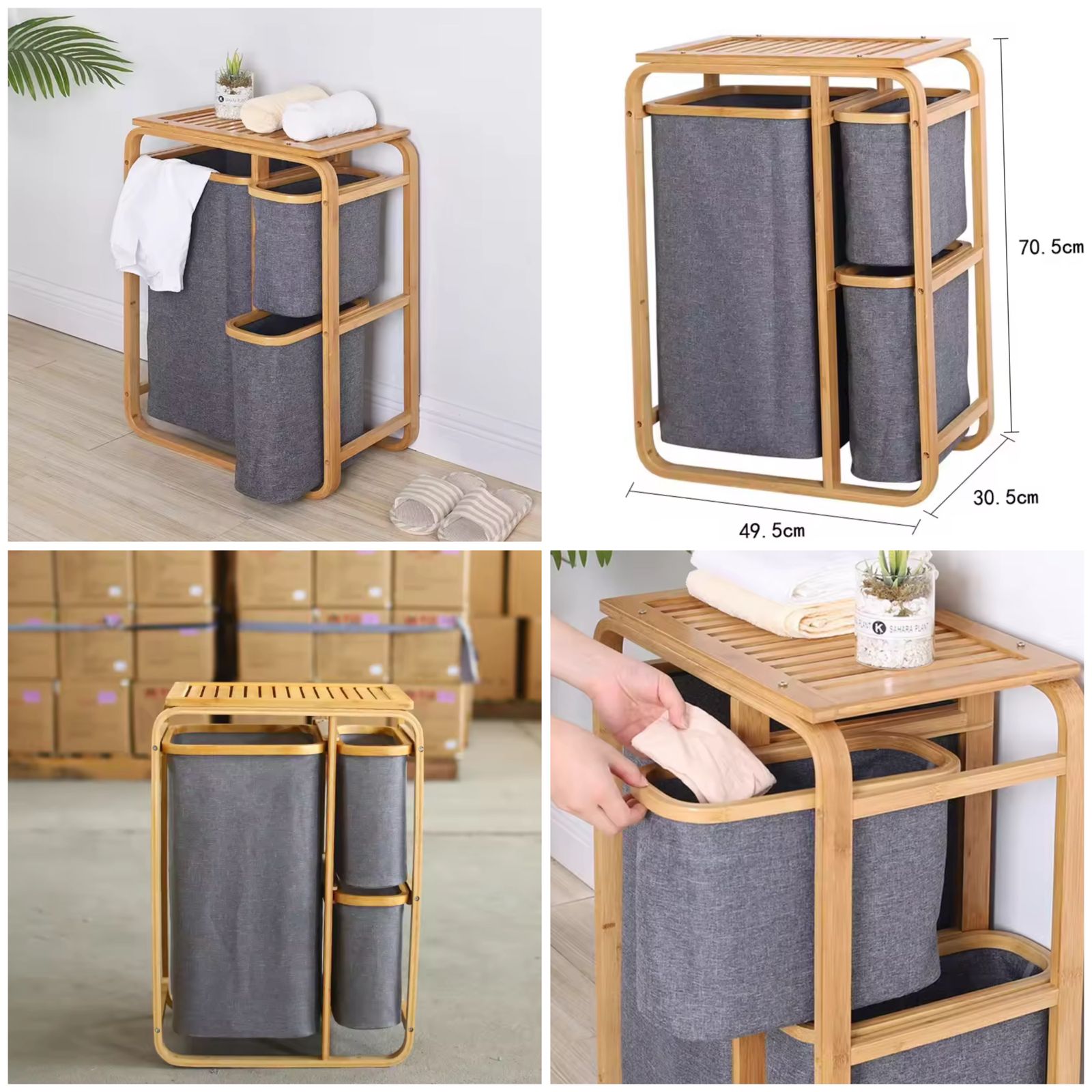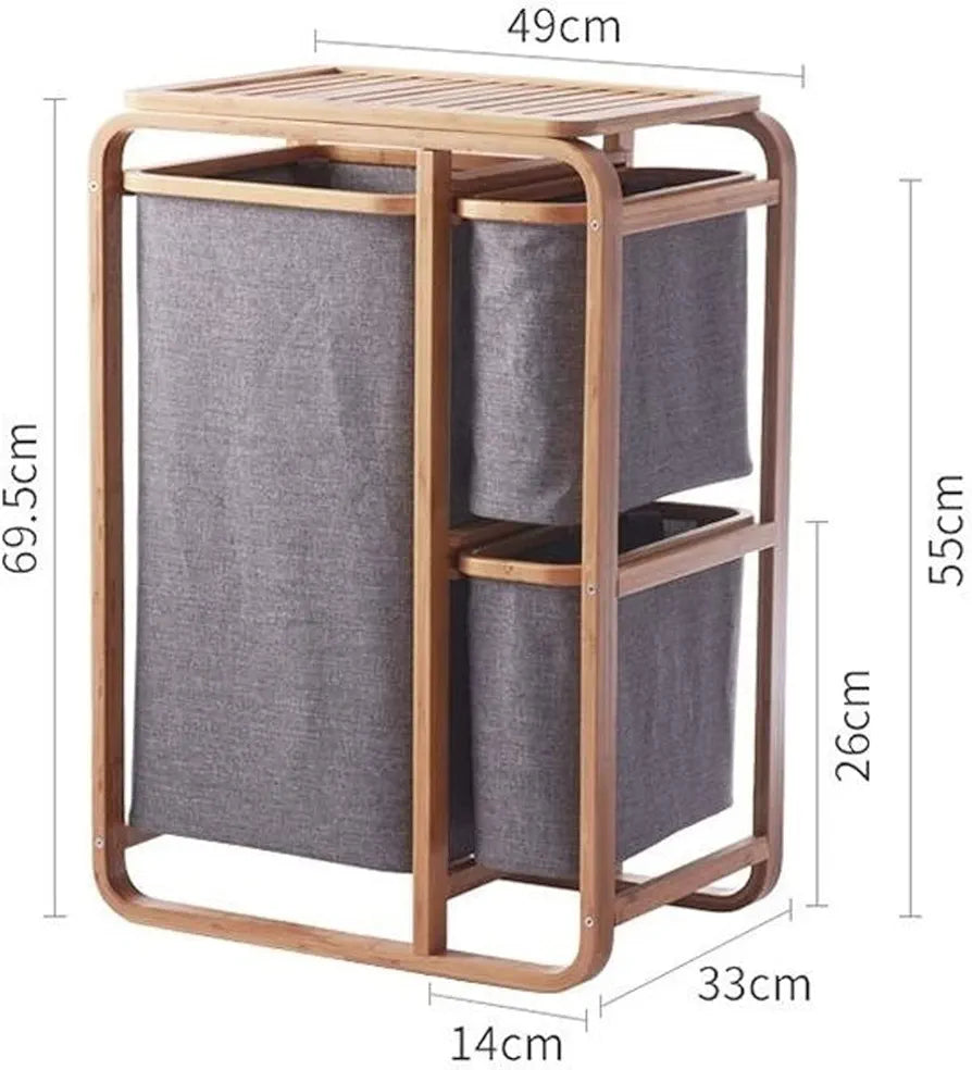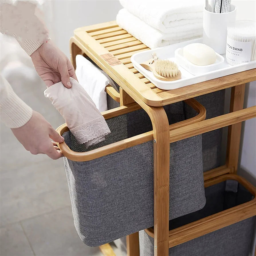 Multi-Tier Bamboo Laundry Sorter with Shelf