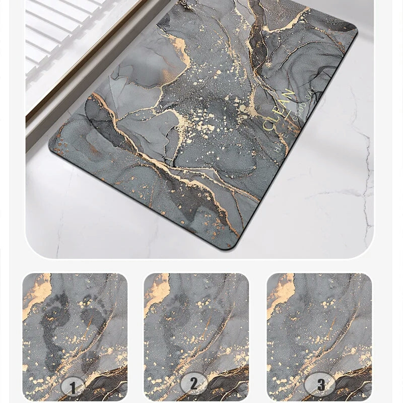 New Elegant Marble Print Sqaure Bath Mat Water Super Absorbent Non-Slip(B)