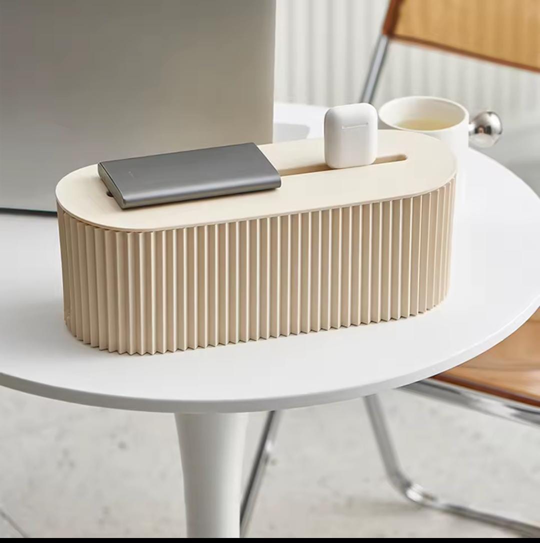 Say goodbye to messy cables. This Nordic Cable Management Box neatly conceals power strips, adapters, and tangled wires while enhancing your space with a modern Scandinavian look. Its ribbed texture and neutral tones make it both functional and decorative.