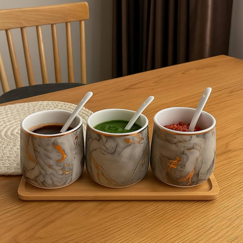 Bring refined elegance to your kitchen or dining table with this Premium Grey Aurora Marble Design Ceramic Condiment Jar Set. Designed to blend luxury with everyday practicality, this 3-piece set keeps your favorite condiments neatly organized while enhancing your décor.
