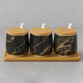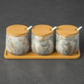 Premium Grey Aurora Marble Ceramic Condiment Jar Set – 3 Pieces (350ml Each)