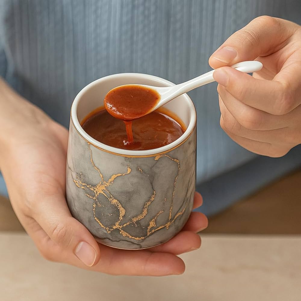 - Built-in Spoon Slots: Each lid includes a notch to hold the ceramic spoon for convenient, mess-free serving.