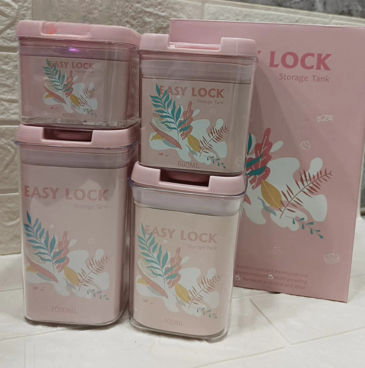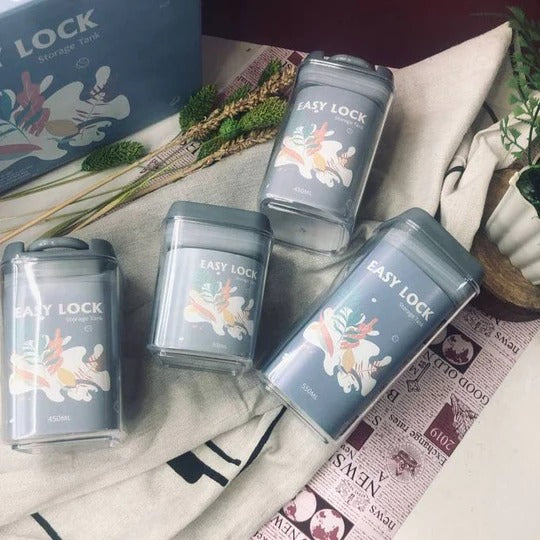Set Of 4 Easy Lock Storage Tank, Acrylic Condiment Seasoning Set, Airtight (400ml, 600ml, 800ml, 1000ml)