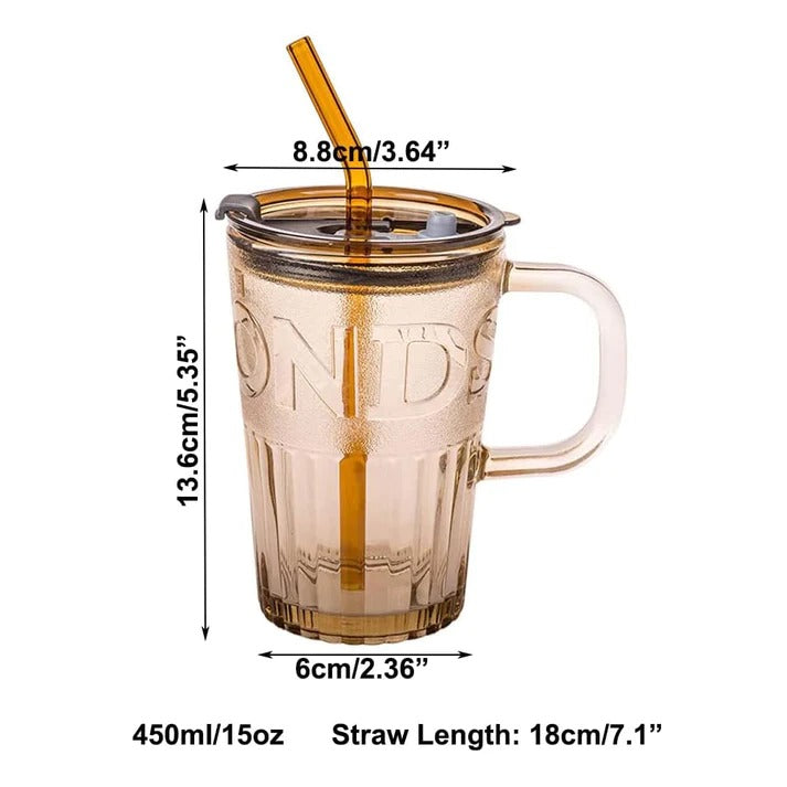 Smoothies Glass Cup With Straw And Lid