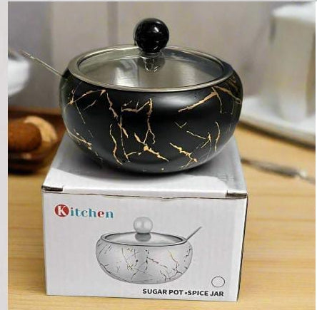 Stainless Steel Sugar & Spice Jar with Glass Lid and Spoon