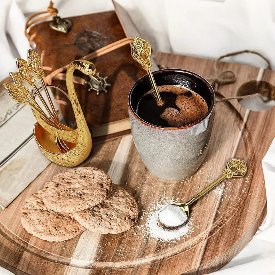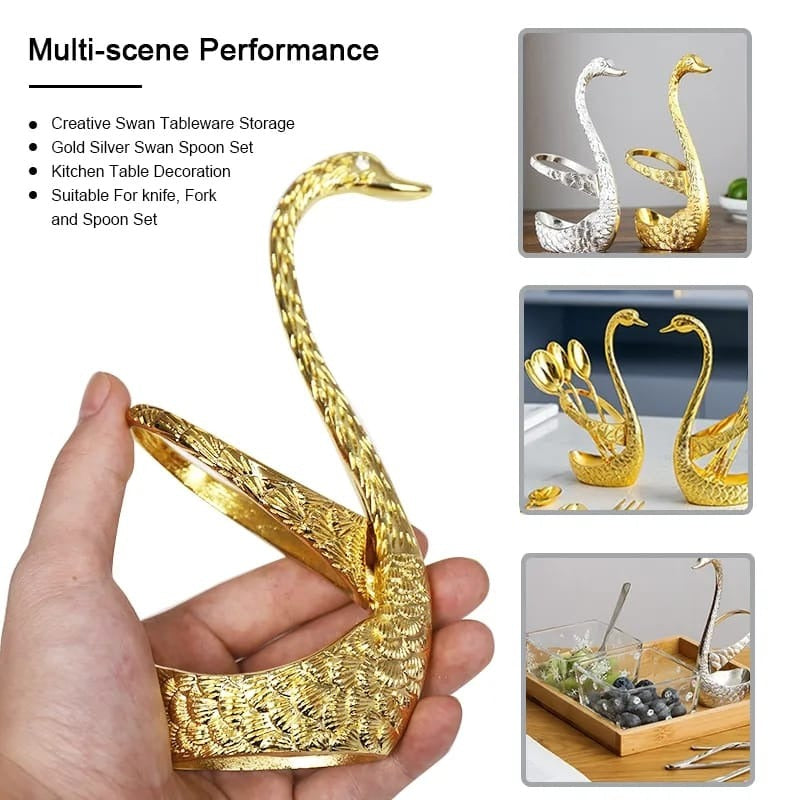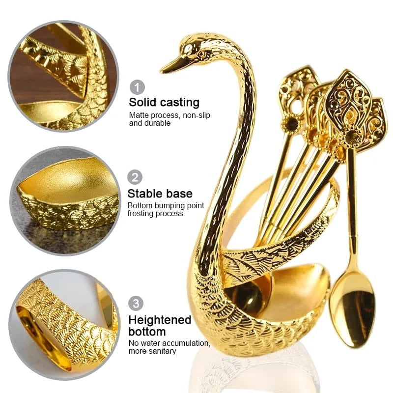 Stainless Steel Swan Shaped Tea Spoon Holder with 6 Spoons
