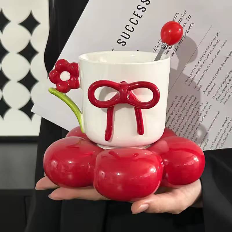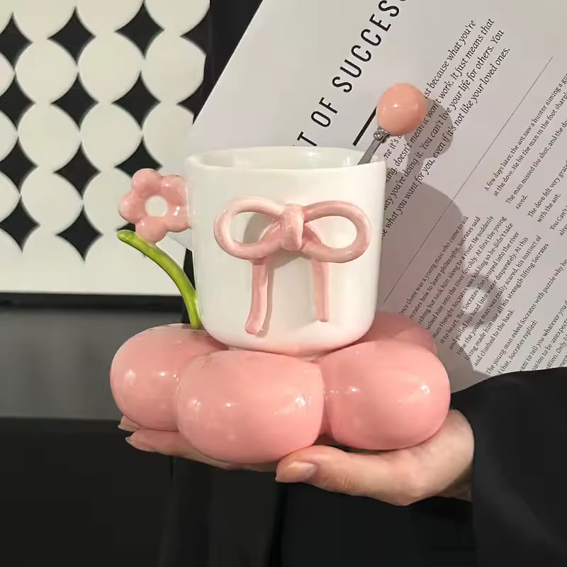 Add a charming touch to your coffee or tea moments with this elegant Sweet Floral Bow Ceramic Mug & Saucer Set. Designed with a delicate 3D bow and a flower-shaped saucer, this set blends beauty with functionality—perfect for everyday use or gifting.