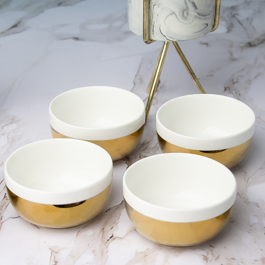 Symphony Adorn Gold Condiment Bowl Set of 4 – White & Gold | Alfresco Australia