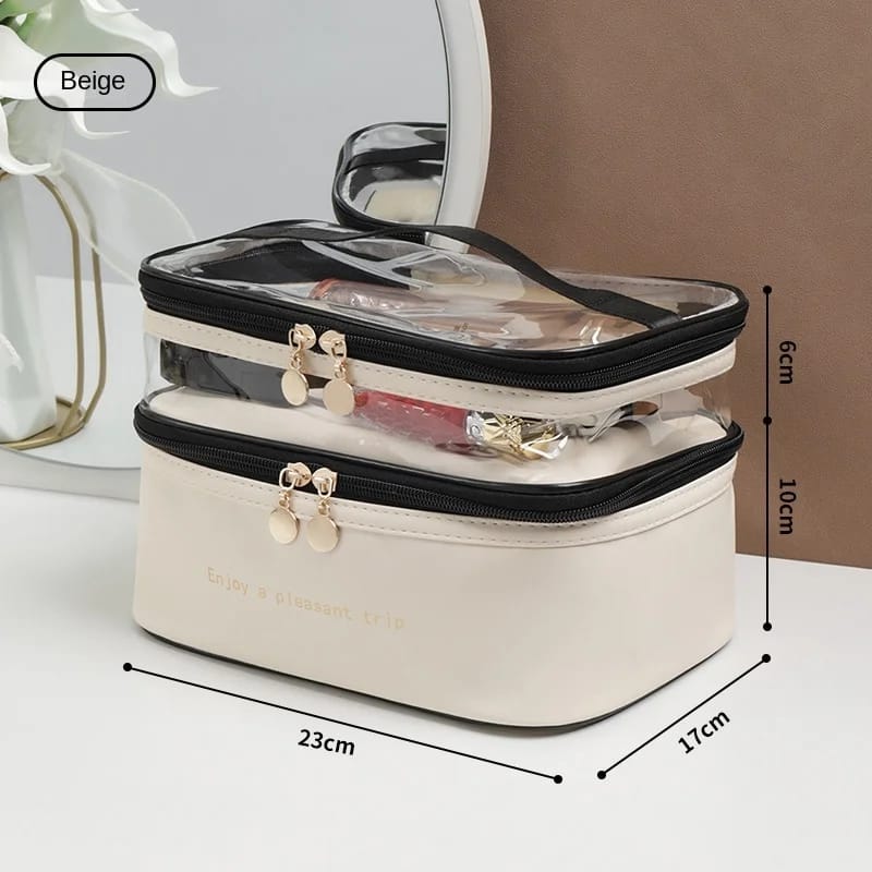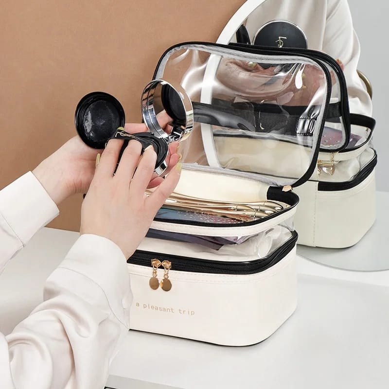 Transparent Portable Waterproof Double Layer Large Travel Makeup Bag Organizer