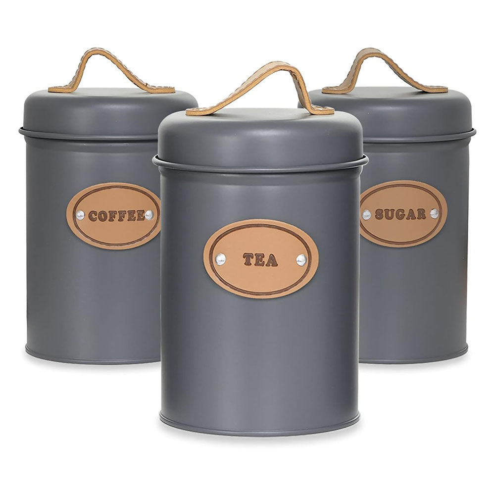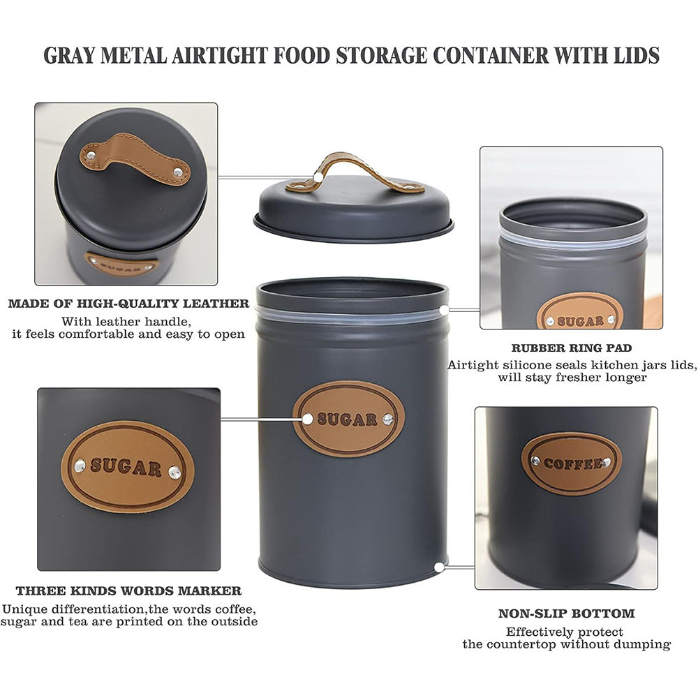 Airtight Farmhouse Kitchen Canisters – Coffee, Tea & Sugar Set (Metal)