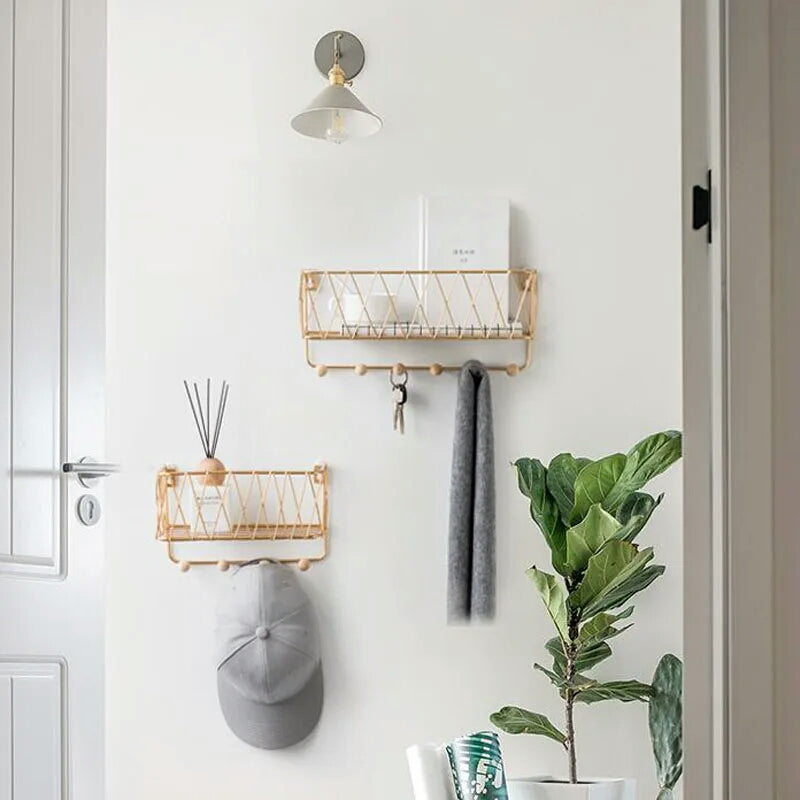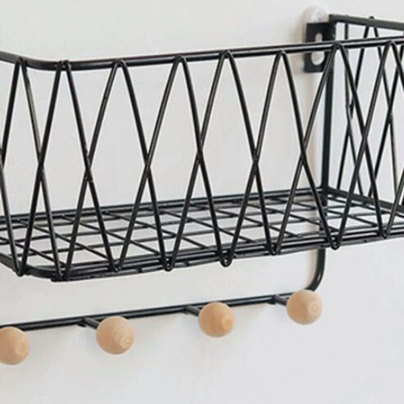 Wall Mounted Iron Storage Rack Shelf with Hooks
