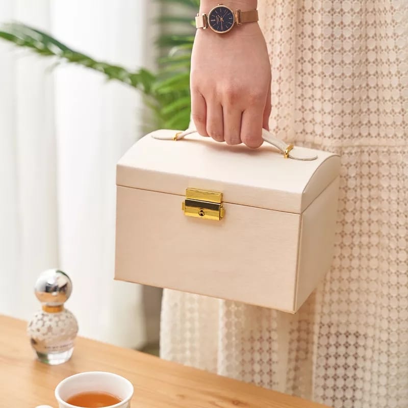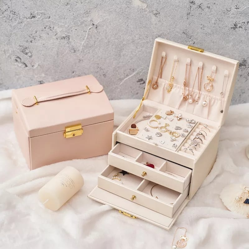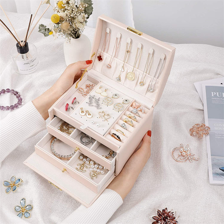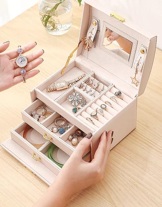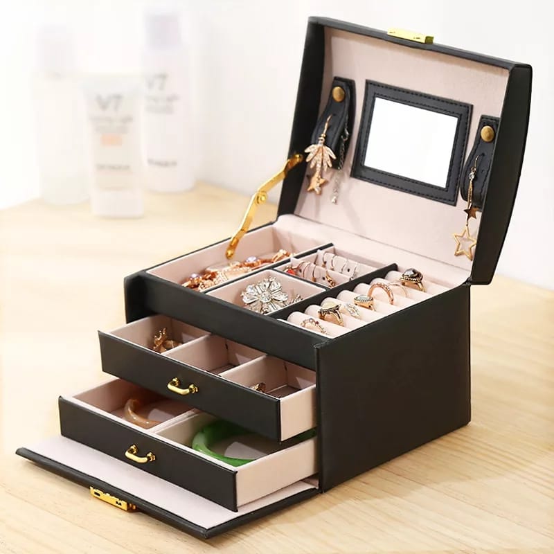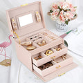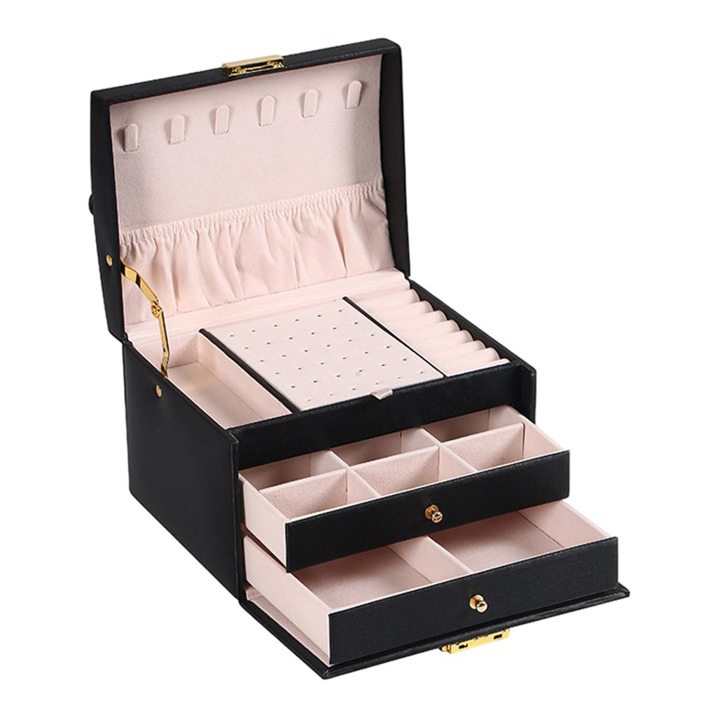 Women Jewellery Box, 3-Layer Travel Jewellery Organiser with Mirror & Lock,